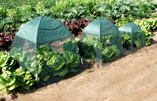 The Bug'N Shade 22" x 22" x 22" unique design reduces the amount of direct sunlight and filters it through the peak mid-day hours so that it helps prevent burning and drying out of the plant. In addition, it blocks out unwanted insects and small pests that can damage the plant. The fine mesh allows air, water and sunlight to penetrate, which is critical for plant life. A fiberglass frame supports the cover and easily pop open for quick installation and fold flat for compact convenient storage. Four (4) spikes are included for anchoring in the ground.