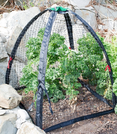 Allows you to watch your plants grow while keeping hungry pests away. All season protection from unwanted animals. Durable construction can be used year after year. The mesh allows air, water and sunlight to penetrate, which is critical for plant life. A fiberglass frame supports the cover and easily pop open for quick installation and folds for compact convenient storage. Four (4) spikes are included for anchoring in the ground.